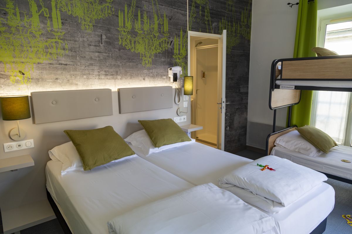 Découvrez nos chambres familiales quadruple tout équipée, 2 lits simples et un lit superposé pour les enfants. Déco moderne et chaleureuse. Près de nombreuses activités, réservez maintenant pour des vacances en famille inoubliables.